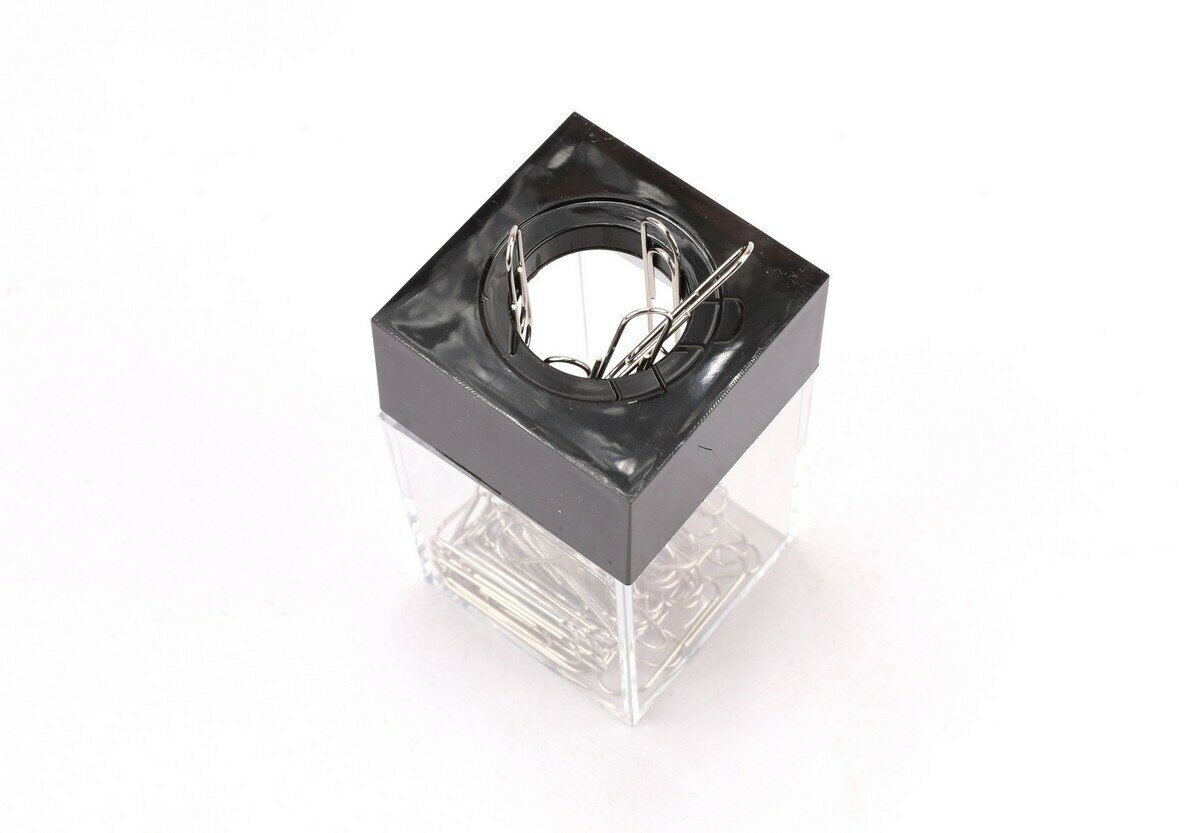 Скрепочница магнитная BRAUBERG с 30 скрепками, прозрачный корпус, черная крышка, 225189, (6 шт.)