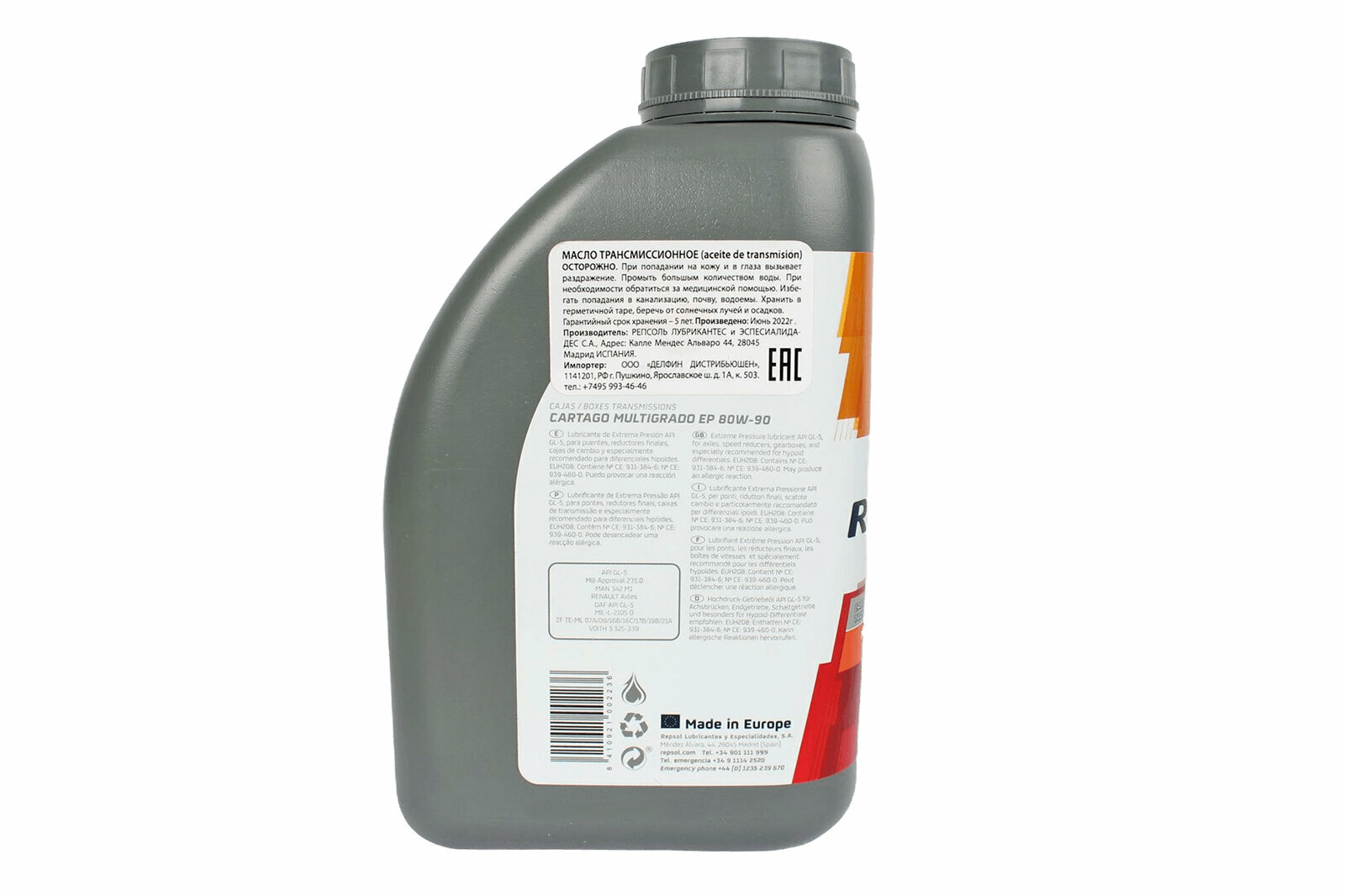 REPSOL CARTAGO MULTIGRADO EP 80W90 Масло трансмиссионное для МКПП 1л