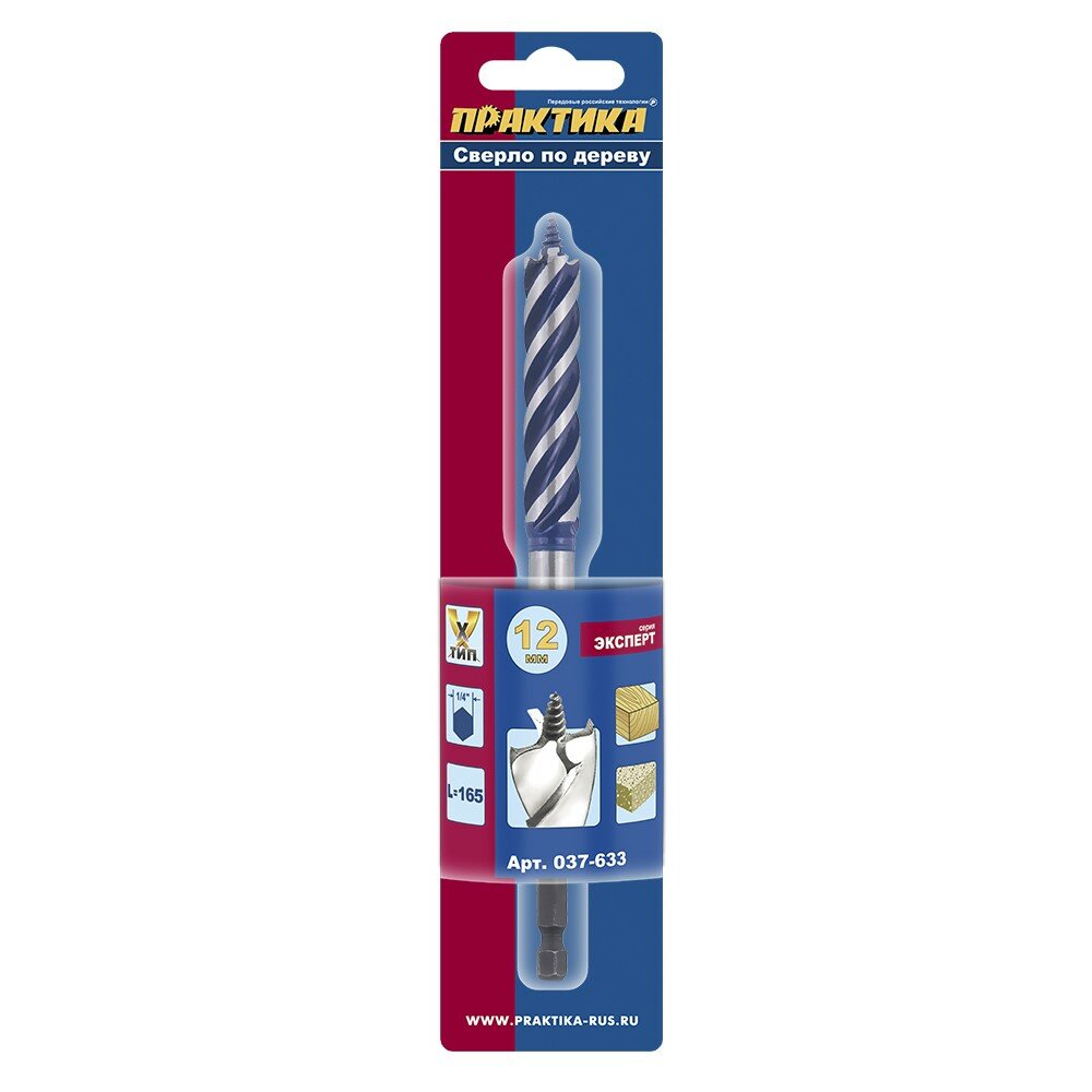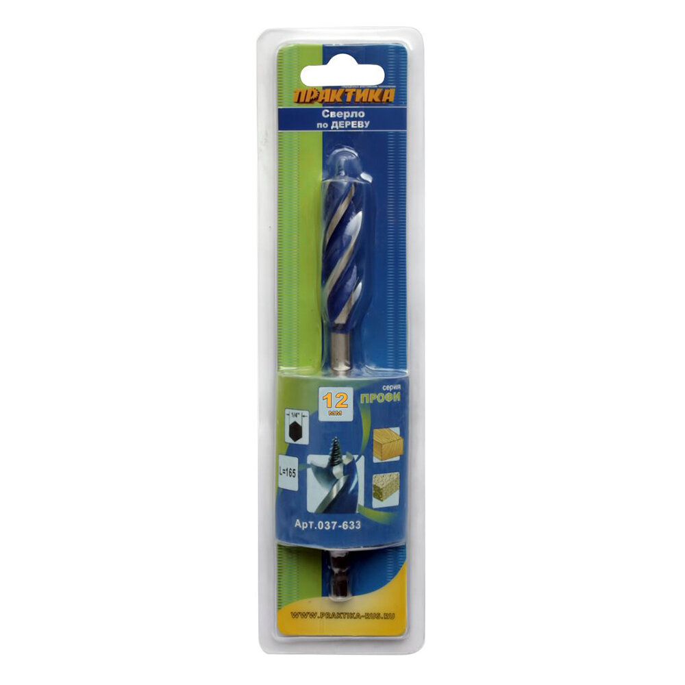 Сверло по дереву X-тип (12x165 мм; в блистере) ПРАКТИКА 037-633