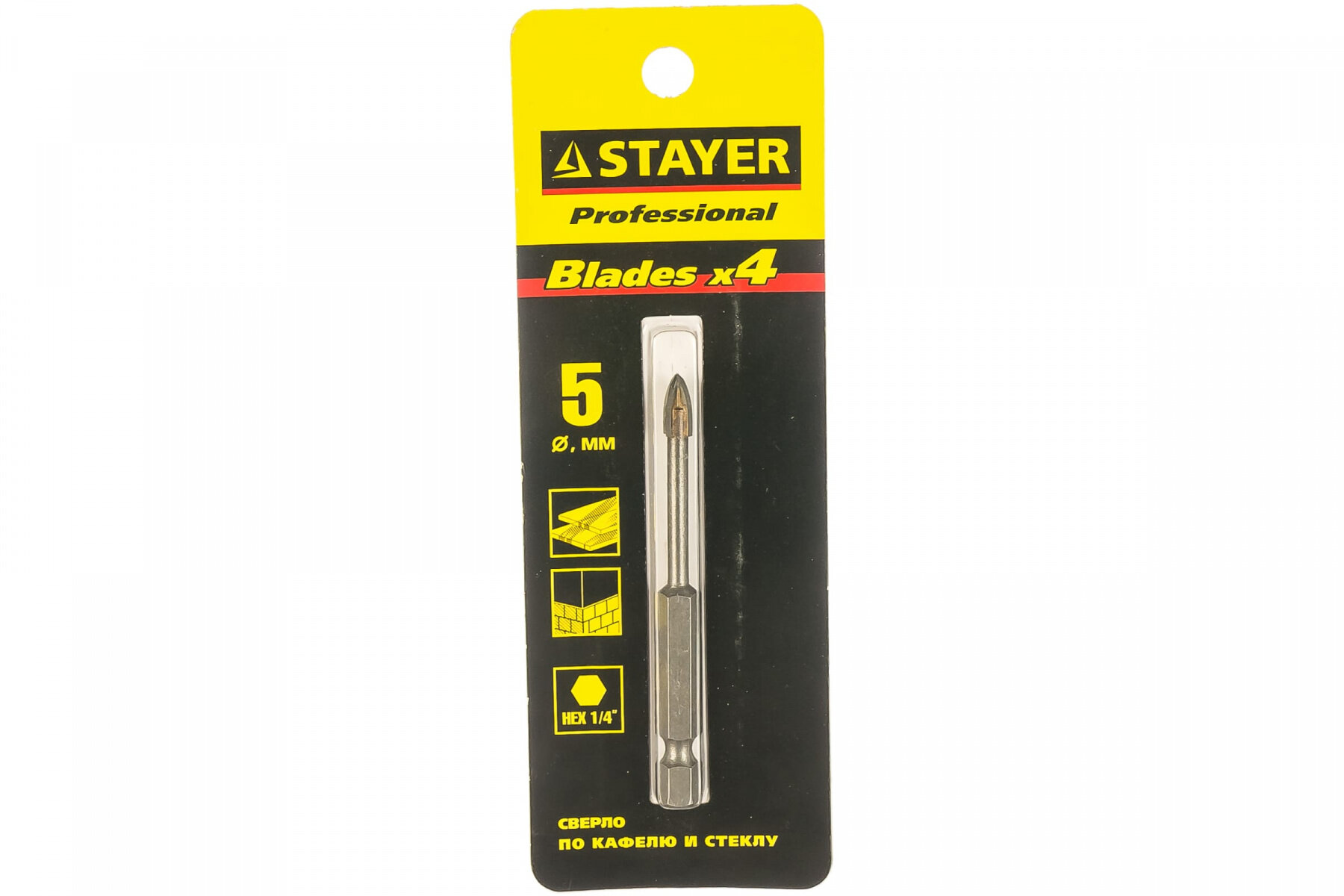 Сверло по кафелю, керамике, стеклу, с четырьмя режущими лезвиями, шестигранный хвостовик, 5 мм, STAYER PROFESSIONAL 2985-05