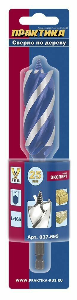 Практика Сверло 3-х заходное по дереву 25x165мм в блистере 037-695 .