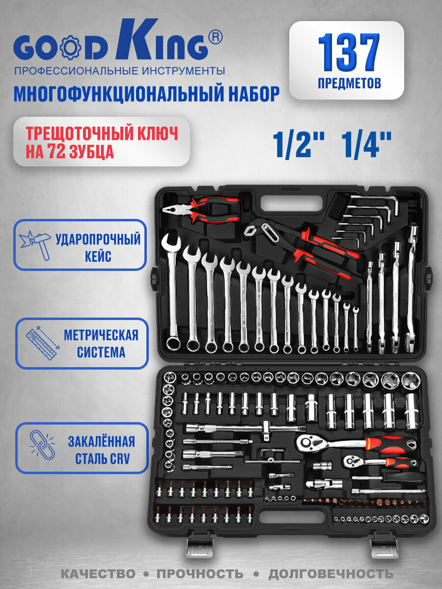GOODKING Набор инструментов 137 предметов 1/4 1/2 трещотка M-10137