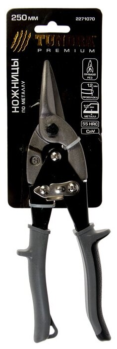 Ножницы по металлу тундра профи, CrV, 2К рукоятки, прямой рез, 250 мм