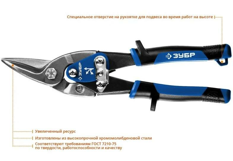 Ножницы по металлу ЗУБР мастер катран 250 мм, прямые, cr-mo
