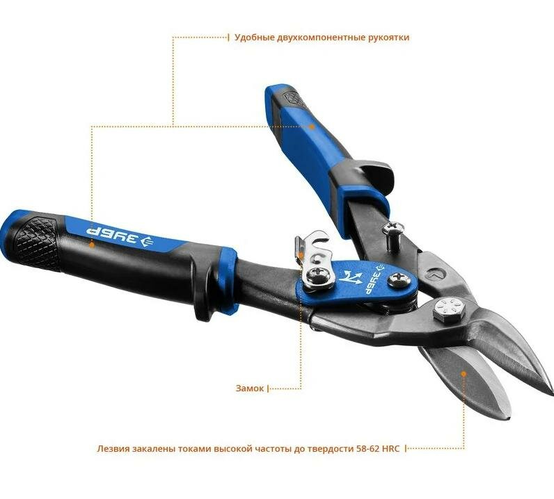 | Дополнительная информация | двухкомпонентные рукоятки; лезвия ножниц закалены токами высокой частоты до твёрдости 58-62 HRC |