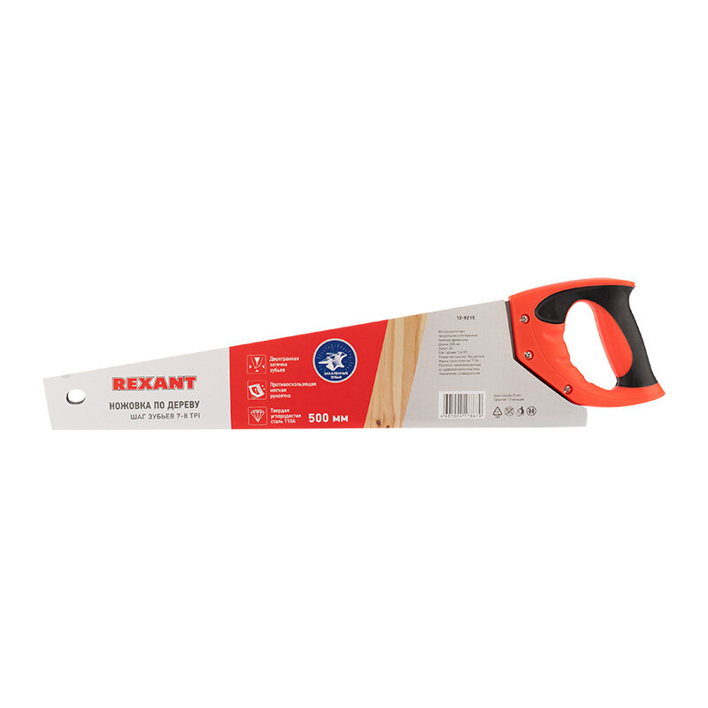 Ножовка по дереву REXANT Зубец 500 мм, 7-8 TPI, каленый зуб 2D, двухкомпонентная рукоятка