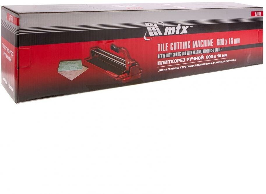 Плиткорез 600 х 16 мм, литая станина, направляющая с подшипником, усиленная ручка MTX 87609