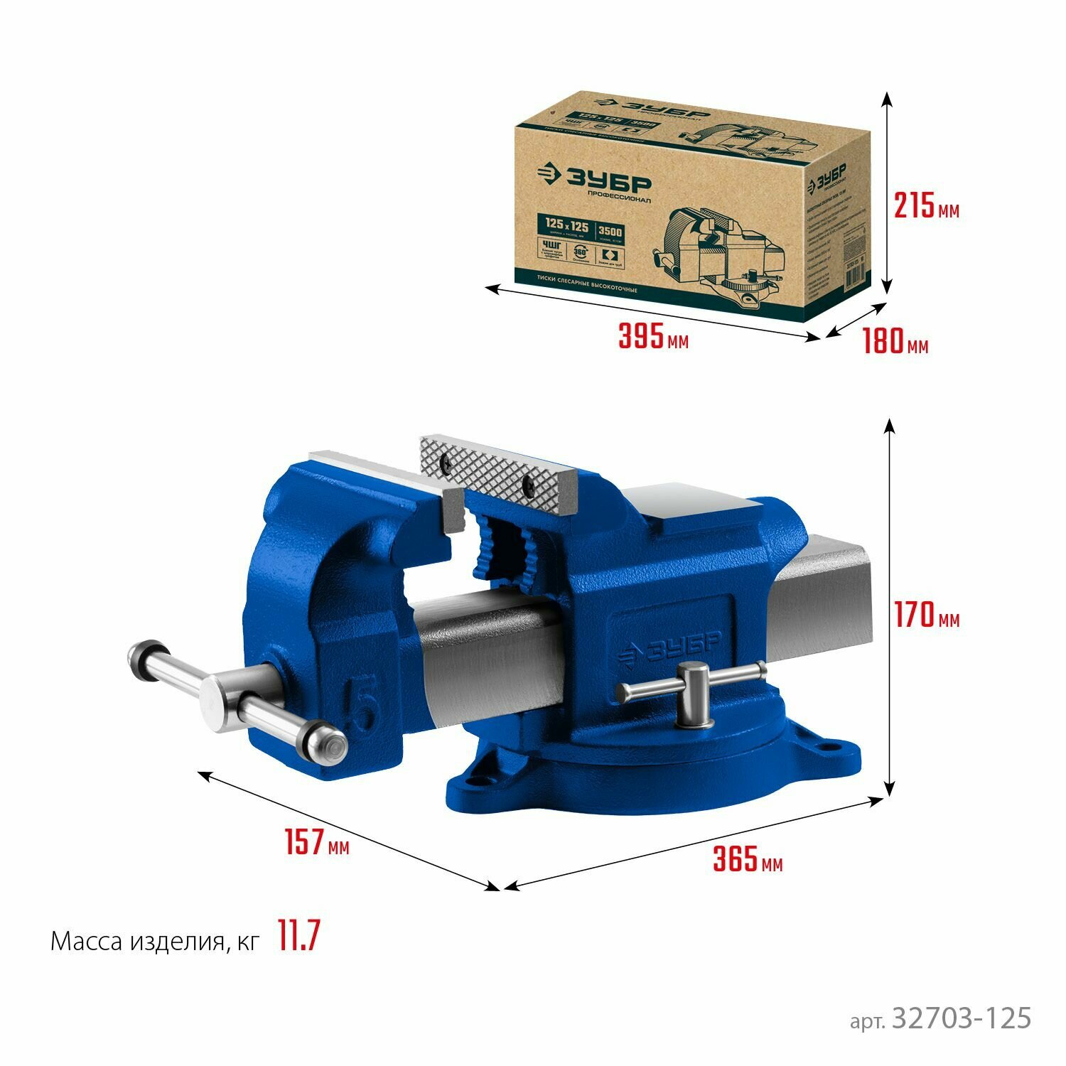 Слесарные тиски ЗУБР профессионал 125 мм 32703-125_z01