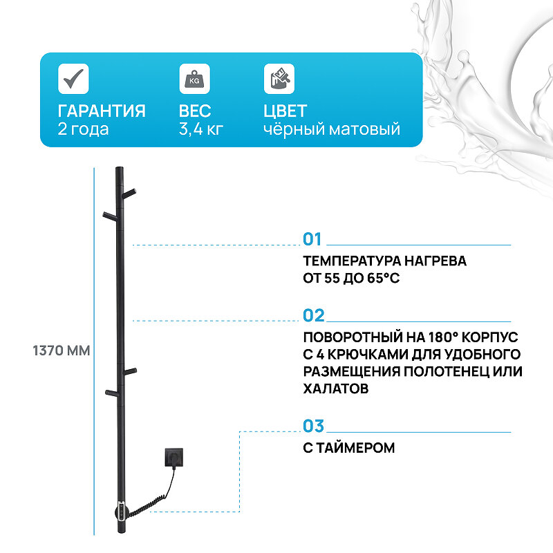 СохранитьПолотенцесушитель электрический Vincea VTD-1DBE 15х140, черный, таймер интересное: