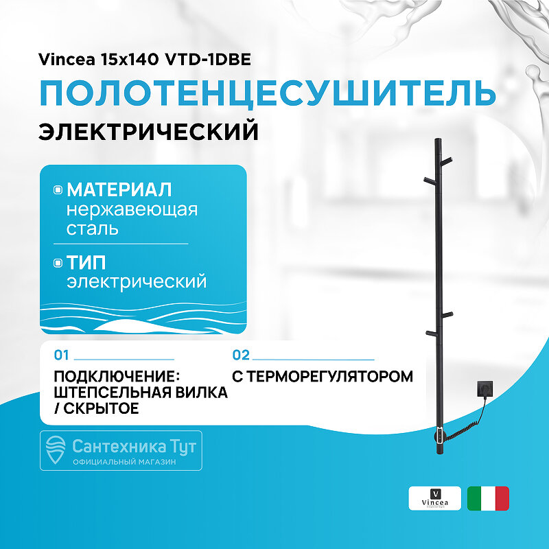 Ниже Вы можете прочитать отзывы на Полотенцесушитель электрический Vincea VTD-1DBE 15х140, черный, таймер, ознакомится с подробными характеристиками, посмотреть интересные обзоры и фотографии на Полотенцесушитель электрический Vincea VTD-1DBE 15х140, черный, таймер.