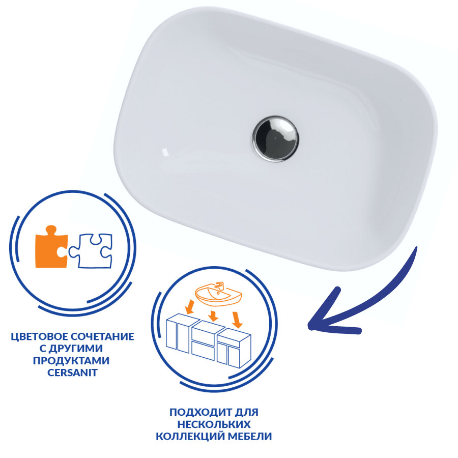 Раковина для столешницы CERSANIT Moduo 50x15x36 см