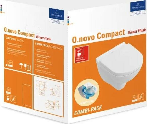 VILLEROY&BOCH O.Novo Унитаз подвесной безободковый укороченный сиденье с крышкой: с системой плавного опускания, микролифт, съемное (9M38S101)