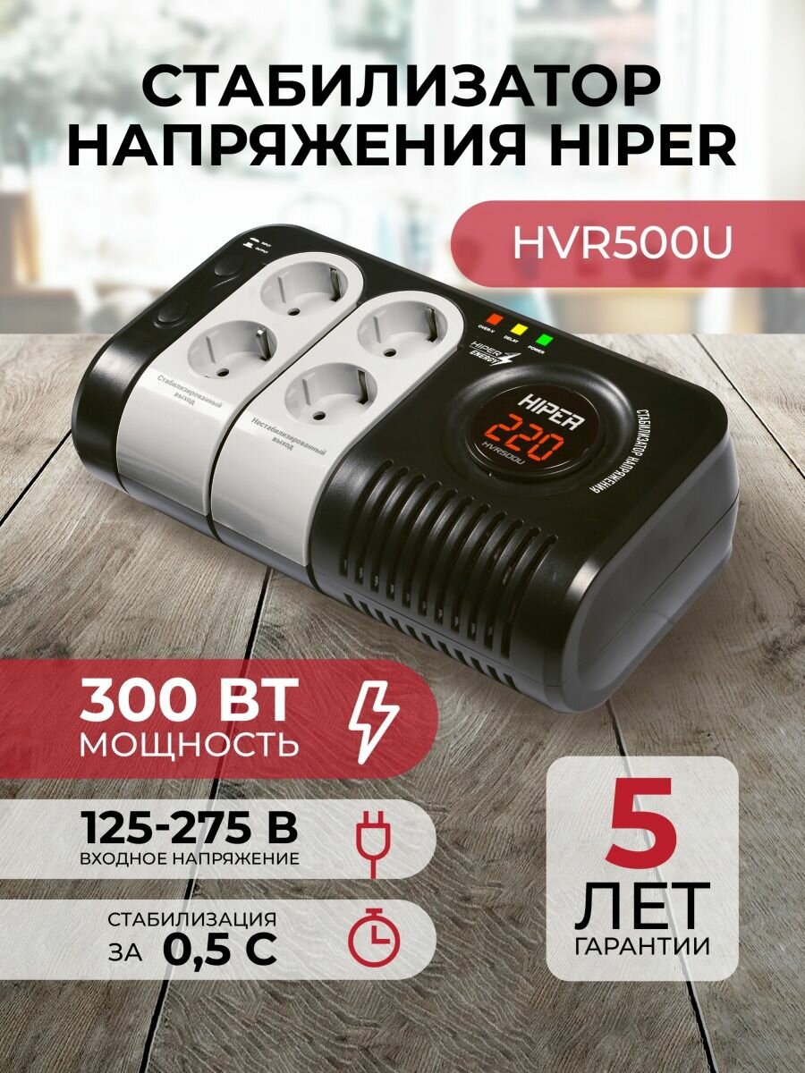 Купить Стабилизатор напряжения Hiper HVR500U (300Вт, релейный)