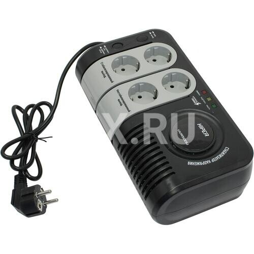 Стабилизатор напряжения HIPER HVR1500U релейного типа, универсальный, 1500ВА, диапазон от 125В до 270В, 750Вт, 4 евророзетки