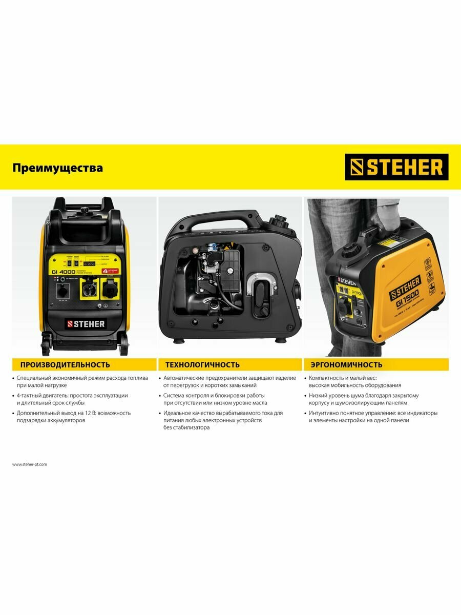 Ниже Вы можете прочитать отзывы на STEHER Инверторный генератор STEHER 3500 Вт GI-4000, ознакомится с подробными характеристиками, посмотреть интересные обзоры и фотографии на STEHER Инверторный генератор STEHER 3500 Вт GI-4000.