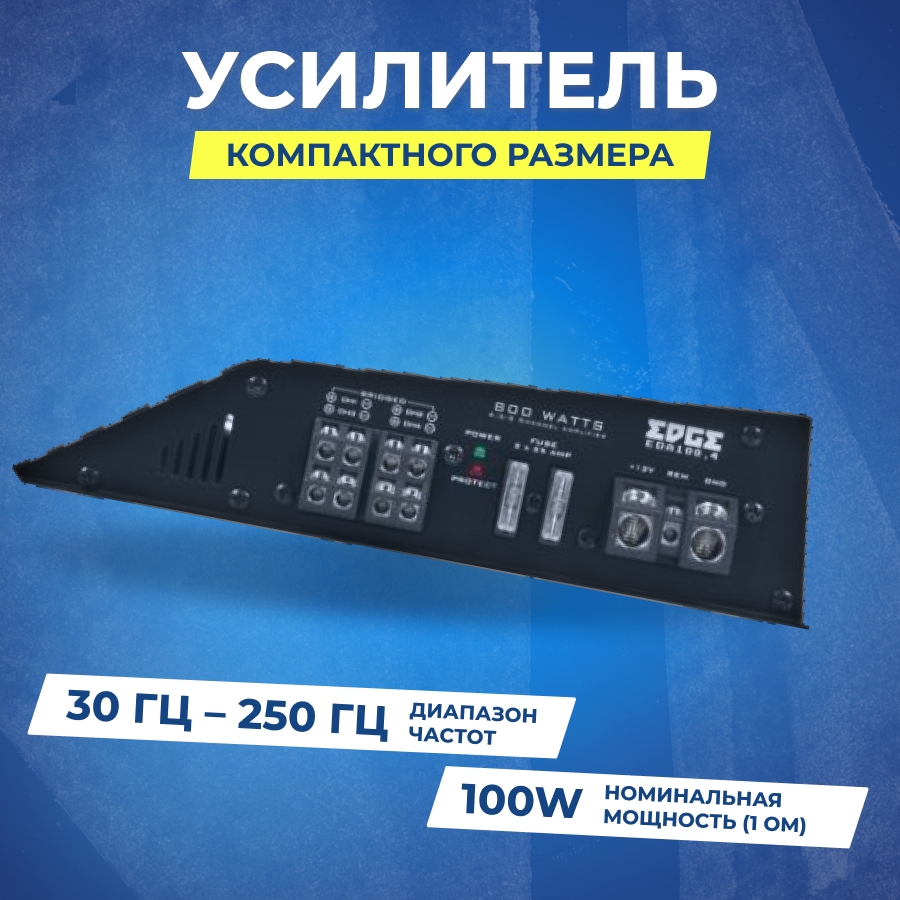 Усилитель автомобильный 4 канальный EDGE EDA100.4-E7 звука для колонок автоусилитель автозвук для машины четырехканальный