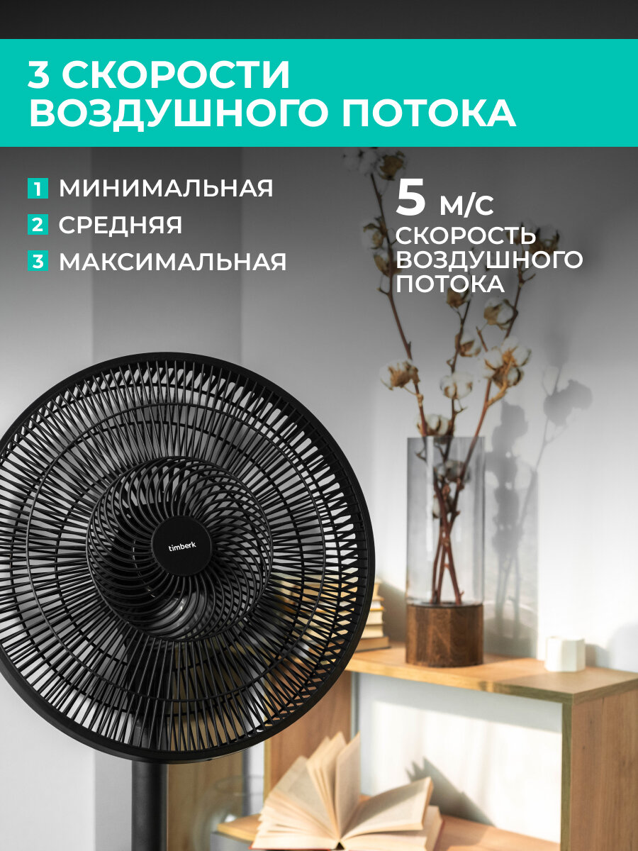 Купить Вентилятор напольный Timberk T-SF1604, настольный, настенный, 60 Вт, 3 скорости, черный