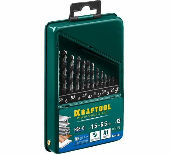 KRAFTOOL HSS-G 13шт(1.5-6.5мм), Набор сверл по металлу HSS-G, сталь М2(S6-5-2), 29656-H13 (29651-H13)