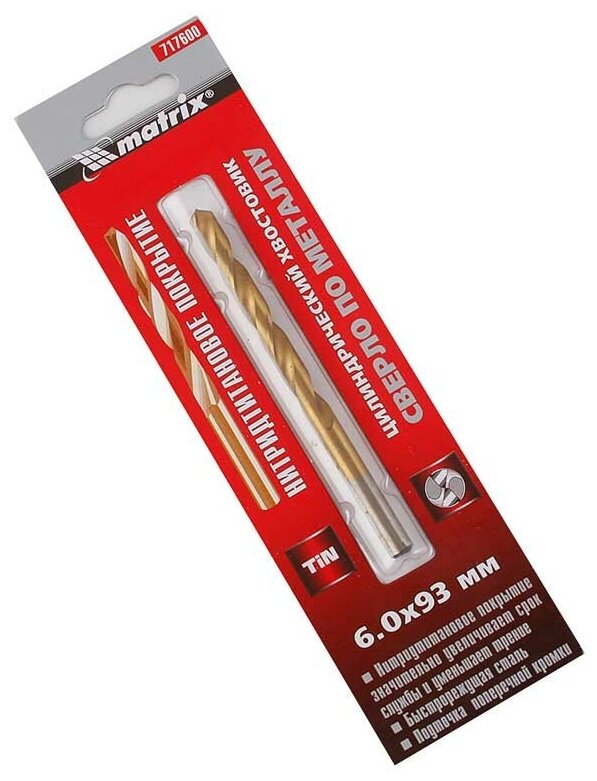MATRIX 717600 Сверло по металлу 6.0х93мм HSS Titanium MATRIX
