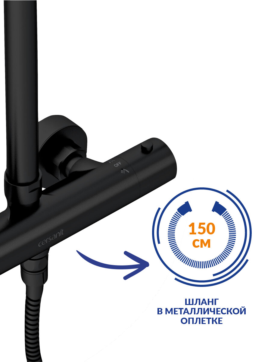 Душевая система Cersanit BRASKO (смеситель термостатический) 3 режима шланг 150 металл