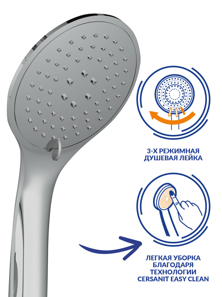 Душевая система CersanitVIVO с изливом 3 режима, шланг 150 PVC квадрат 64529