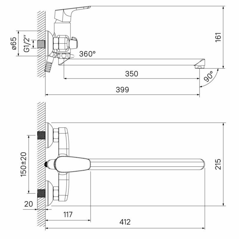 | Длина излива | 399 мм |
