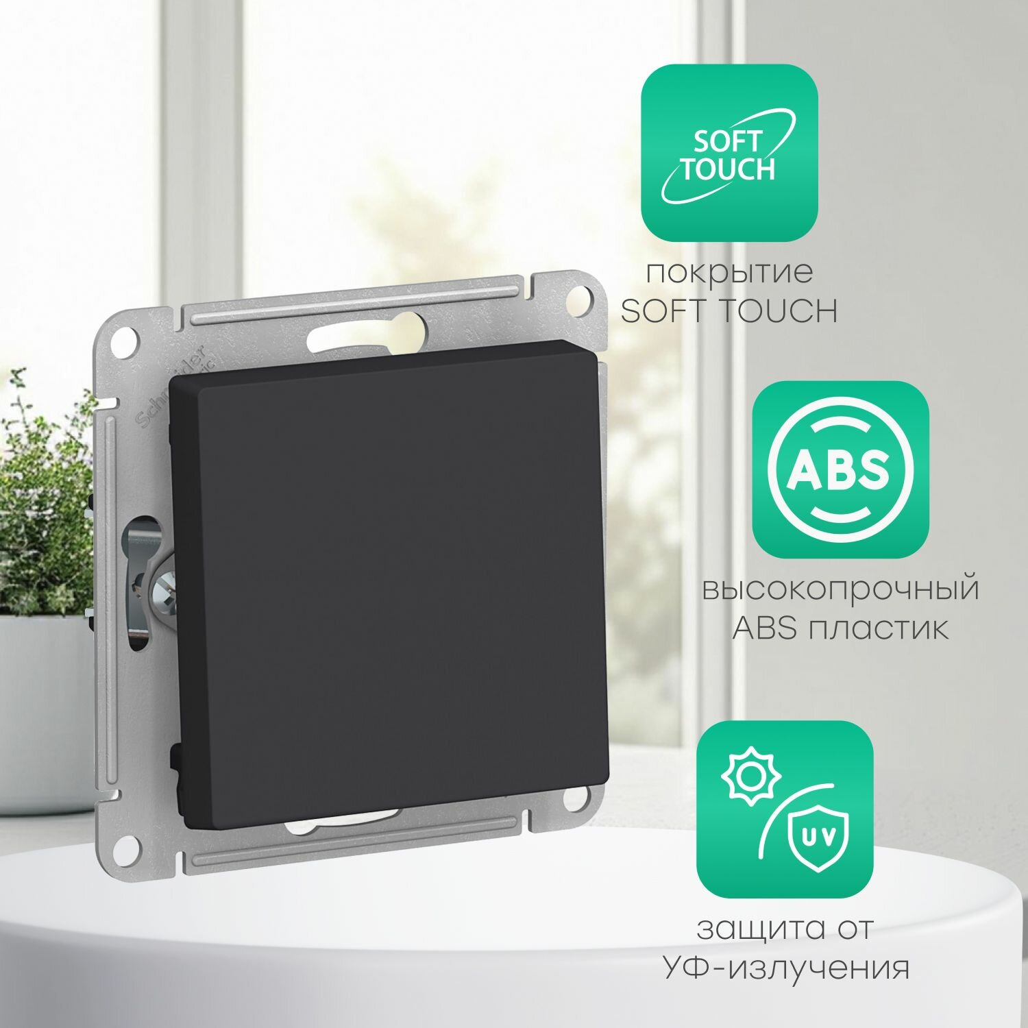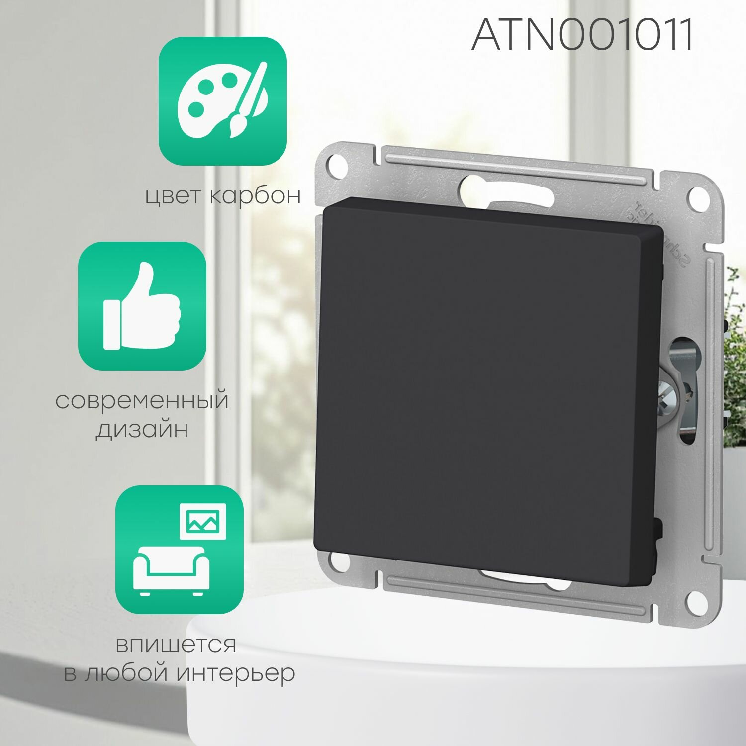 Купить Schneider Electric ATLASDESIGN 1-клавишный выключатель, сх.1, 10АХ, механизм, карбон ATN001011