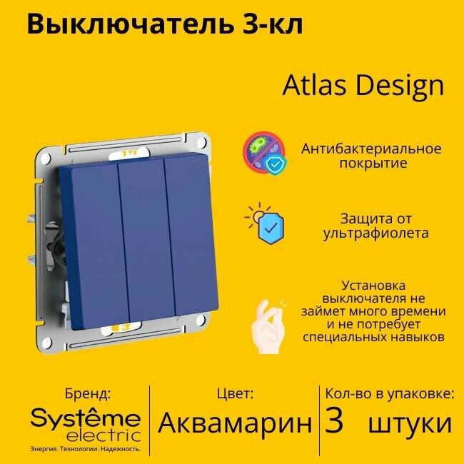 СохранитьВыключатель Systeme Electric Atlas Design 3-клавишный, ATN001131 Аквамарин - 3 шт. интересное: