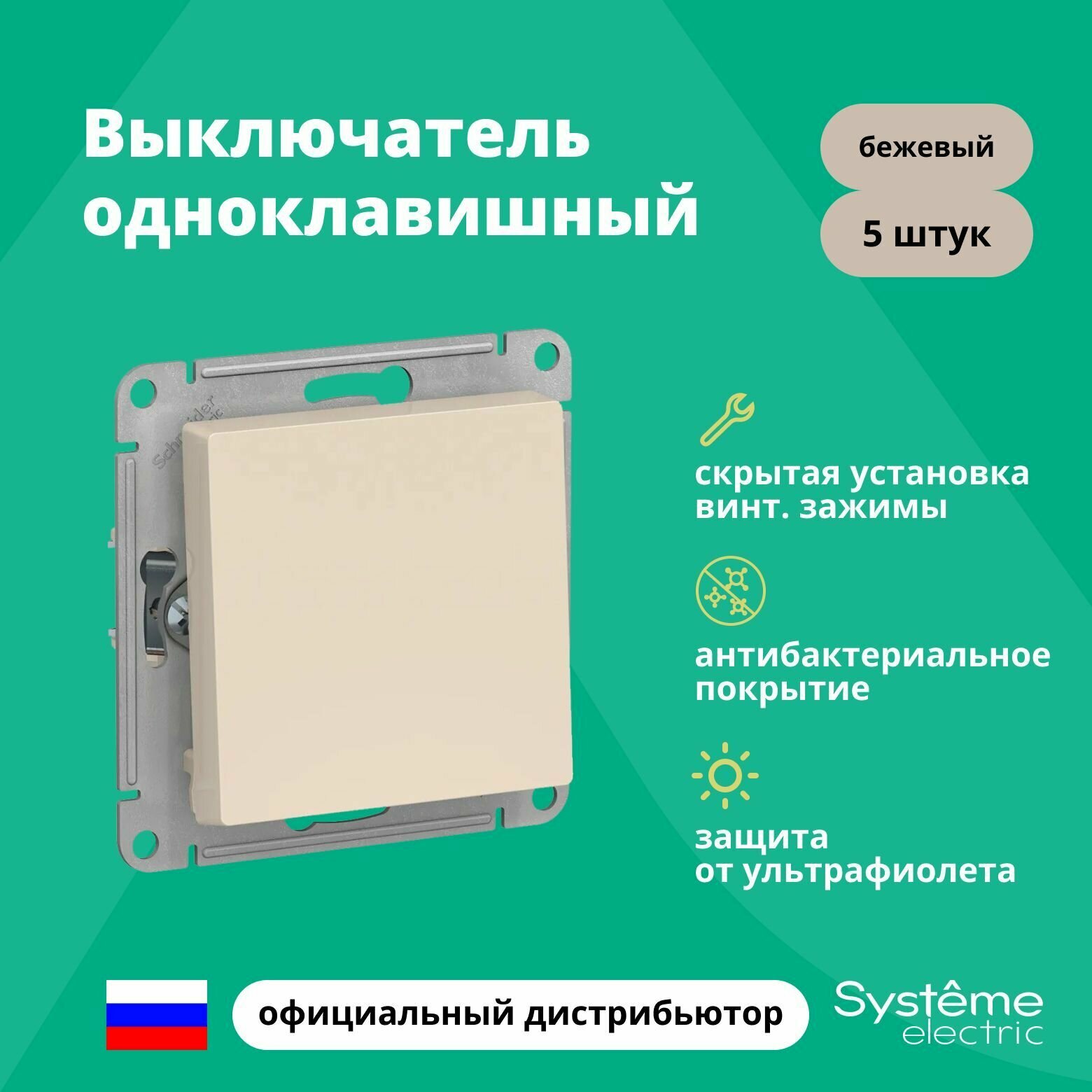 Купить Выключатель Systeme Electric Atlas Design 1-клавишный, ATN000211 Бежевый - 5 шт.