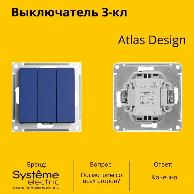 СохранитьВыключатель Systeme Electric Atlas Design 3-клавишный, ATN001131 Аквамарин - 5 шт. интересное:
