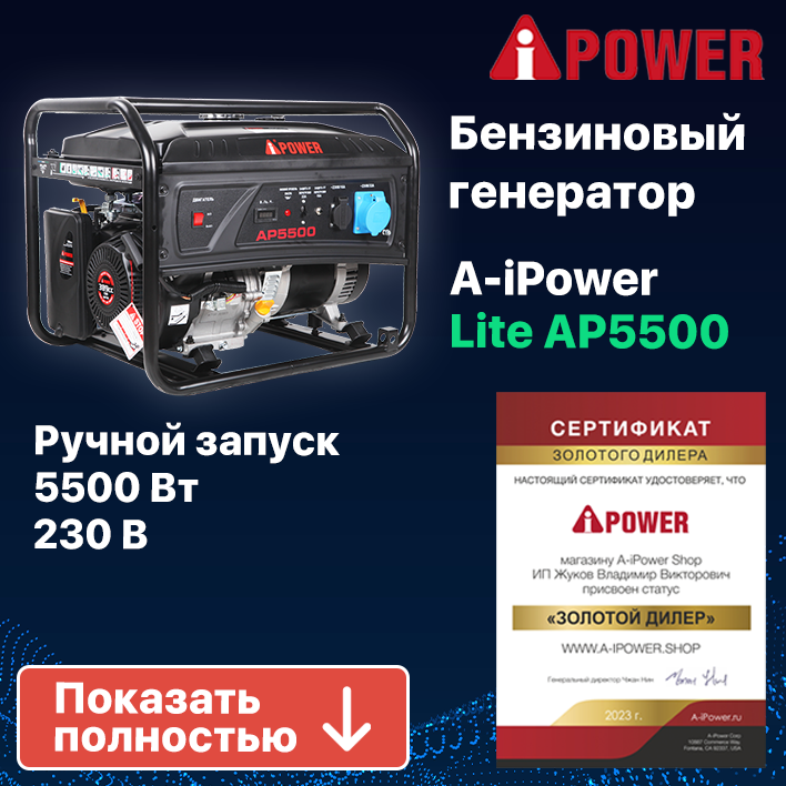 СохранитьГенератор бензиновый мобильный A- IPOWER LITE AP5500 5,5кВт 70,9кг интересное: