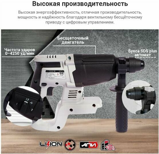 Бесщеточный аккумуляторный перфоратор ИНТЕРСКОЛ ПА-22/18В 649.0.0.70, АПИ, без АКБ и ЗУ