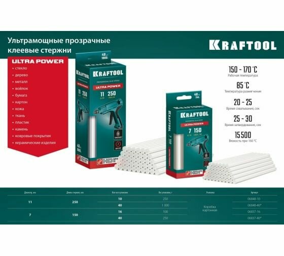Купить KRAFTOOL Cristal Кристально прозрачные клеевые стержни d 11x250 мм, 40 шт. 06846-40