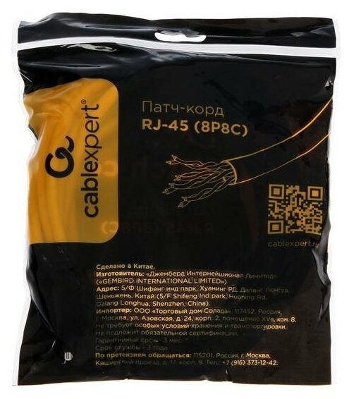 | Отзыв: | Кабель соответствует ожиданиям и цене. Коннекторы отлиты качественно. Оболочка самого провода выполнена из эластичного пластика и не лопается. Как свиты пары, я не проверял, но по ощущениям (и встроенному в материнку тесту кабеля) категории 5е он соответствует или очень близок. Могу рекомендовать к покупке. |