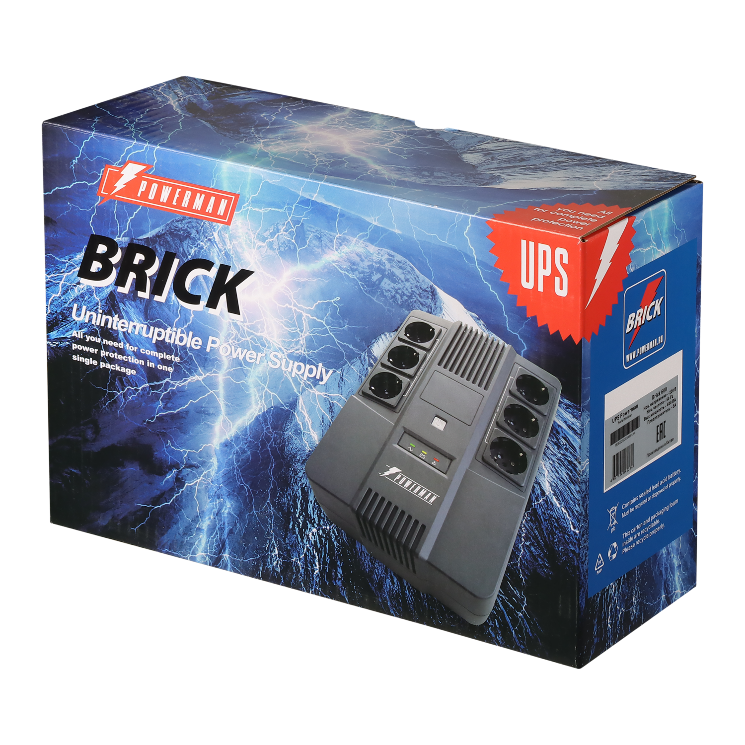 Powerman Brick 600, ИБП POWERMAN Brick 600, линейно-интерактивный, 600ВА, 360Вт, 3 евророзетки с резервным питанием, 3 евророзетки с фильт