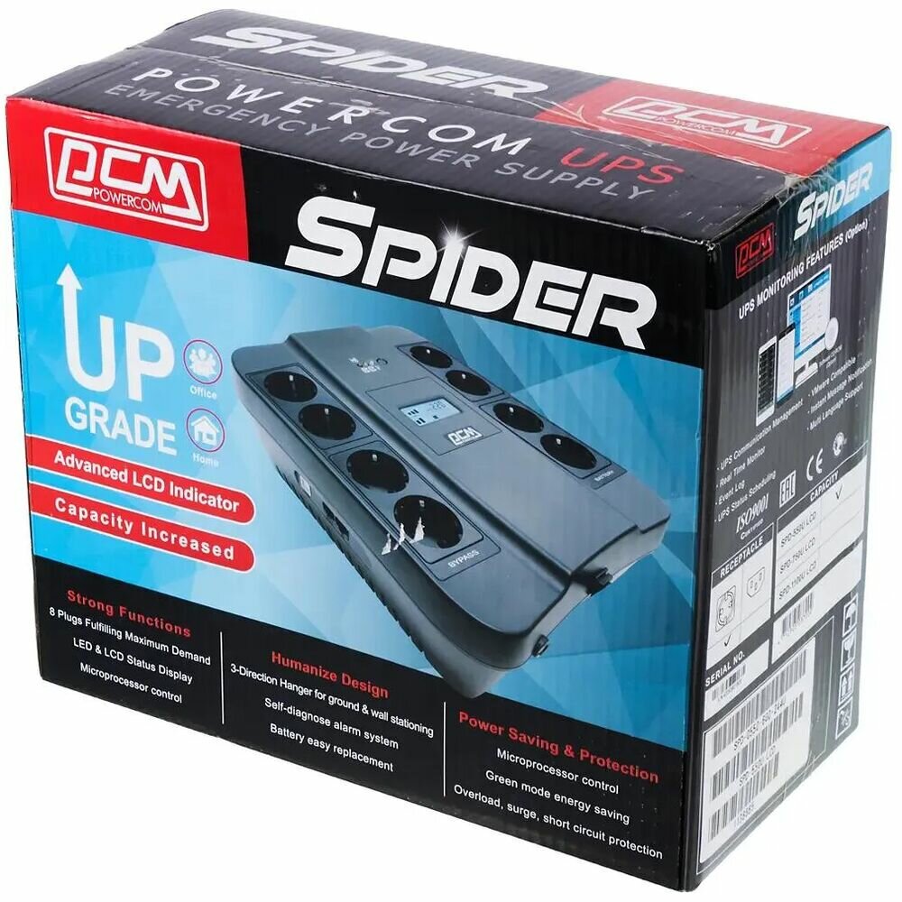 Ниже Вы можете прочитать отзывы на Источник бесперебойного питания Powercom Spider SPD-550U LCD USB 330Вт 550ВА черный, ознакомится с подробными характеристиками, посмотреть интересные обзоры и фотографии на Источник бесперебойного питания Powercom Spider SPD-550U LCD USB 330Вт 550ВА черный.