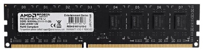 AMD 4 ГБ DDR3 1600 МГц DIMM CL11 R534G1601U1S-UO