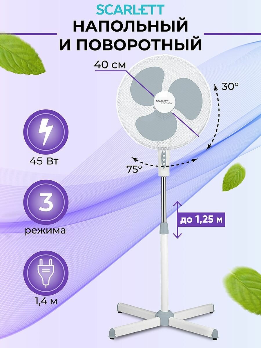 Вентилятор напольный Scarlett SC-SF111B01, 40 дюймов, 3 скоростных режима