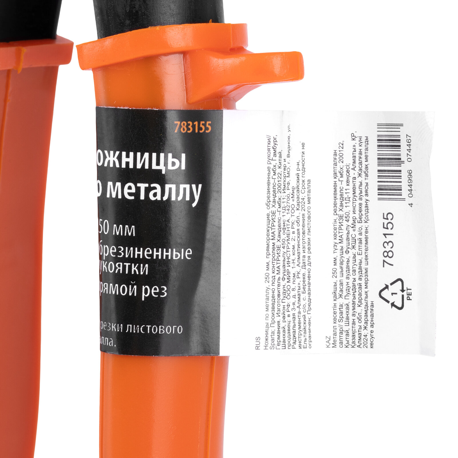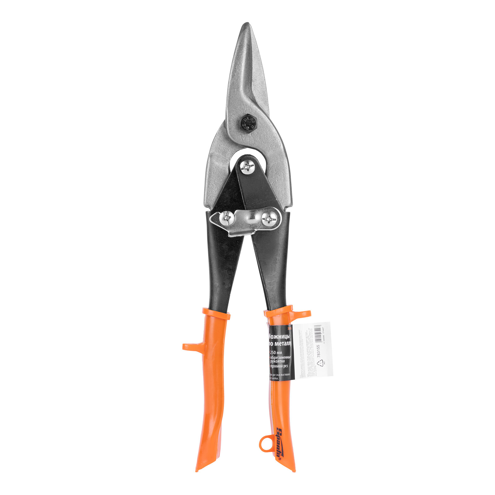 Ножницы по металлу SPARTA, 250 мм, пряморежущие, обрезин рукоятки (783155)