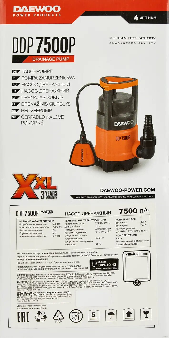 Дренажный насос DAEWOO DDP 7500P (5кВт, 7500л/час)