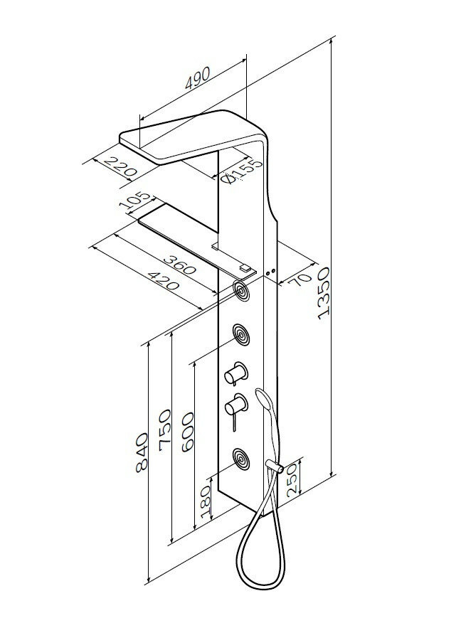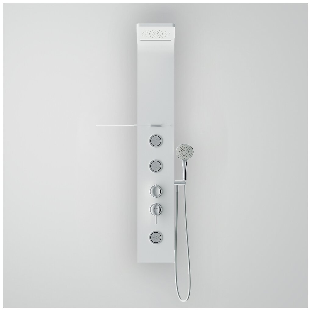 | Дополнительная информация | цвет белый матовый; длина душевой панели: 1350 мм; диаметр душевой лейки: 100 мм; длина верхнего душа: 490 мм; ширина верхнего душа: 220 мм |