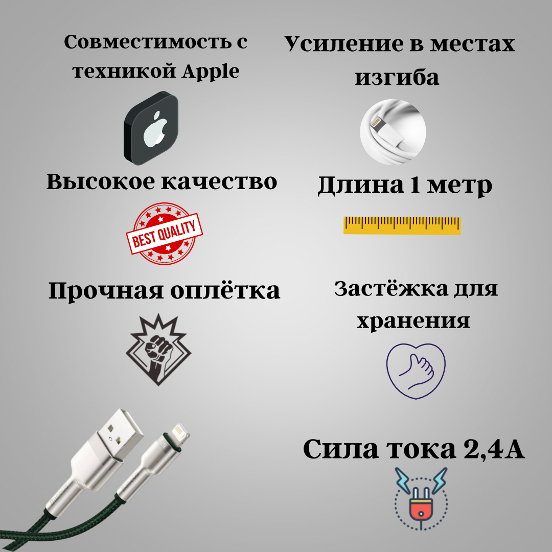 СохранитьКабель для зарядки и передачи данных Baseus Cafule Metal Data USB - Lightning cable 2.4 A 1 m Зеленый (CALJK-A06) интересное: