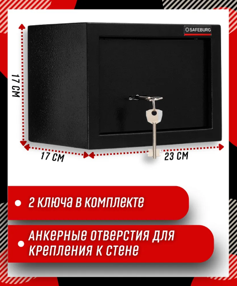Купить Сейф мебельный SAFEBURG SB-170K черный, для денег, для офиса и дома, с ключевой замок, 23х17х17 см.