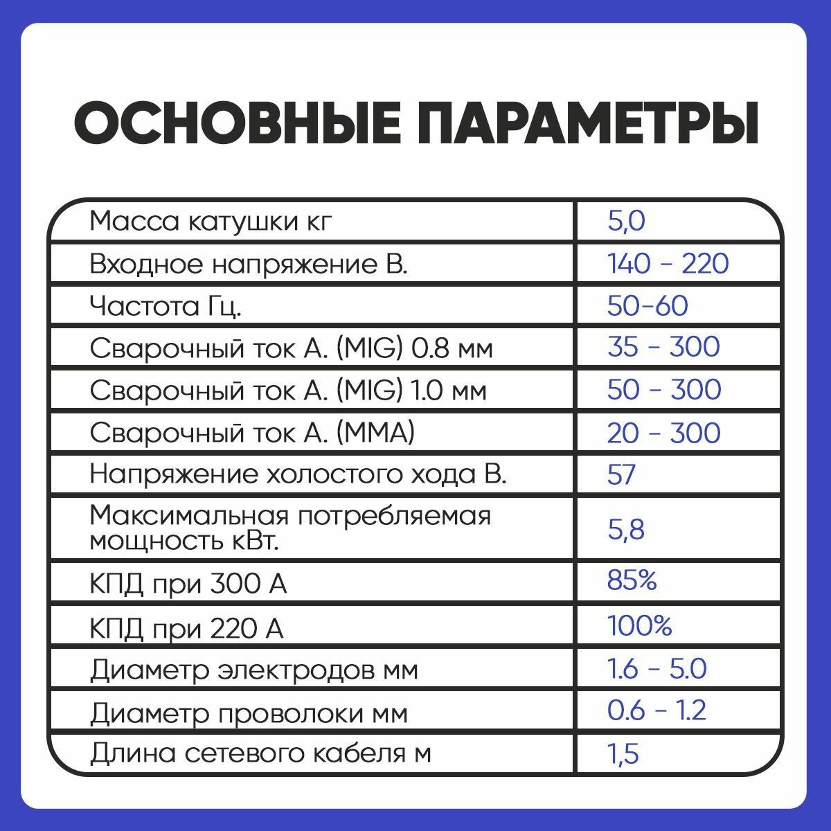 | Дополнительные функции | антиприлипание / горячий старт / форсаж дуги |