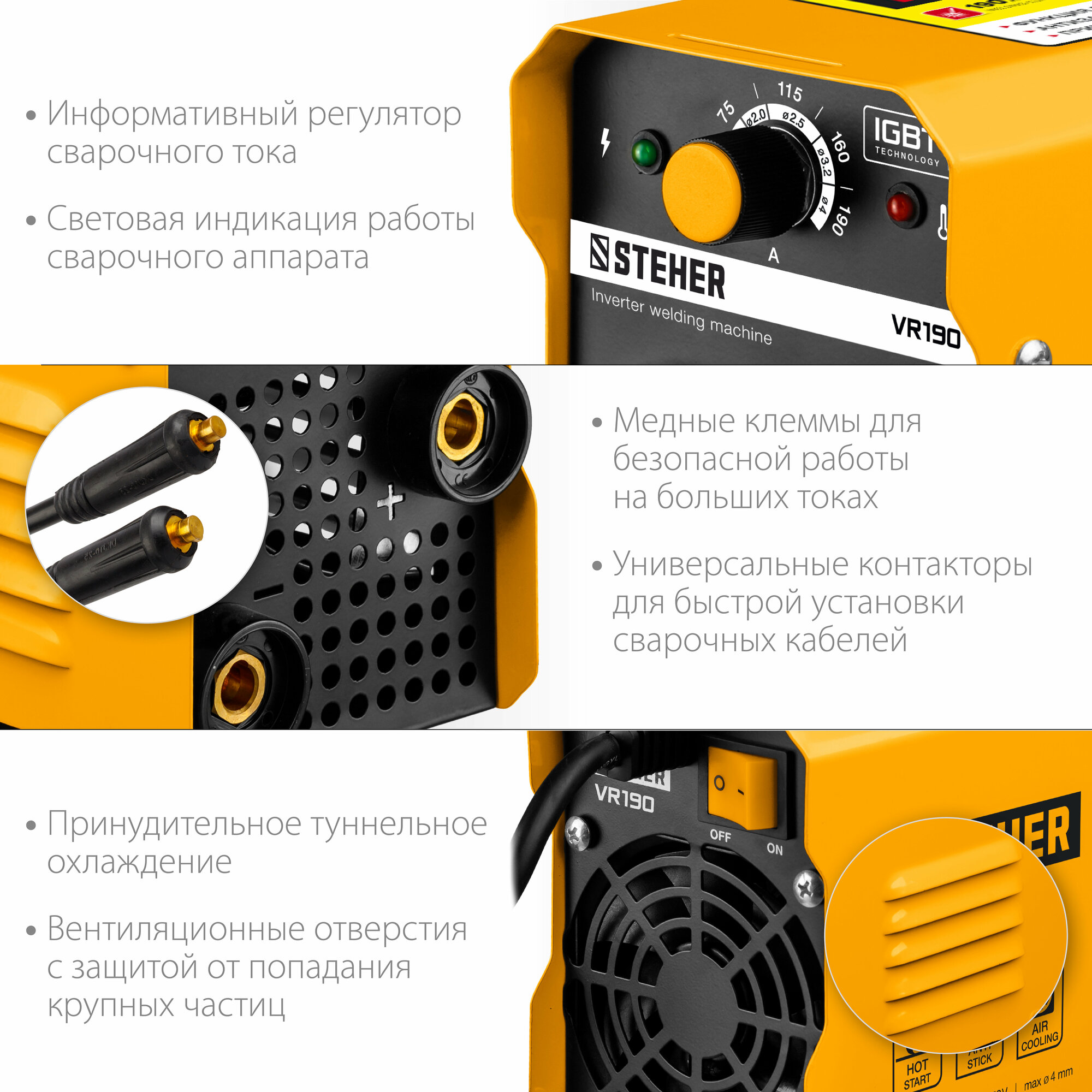 STEHER 190 А, ММА, сварочный аппарат инверторный VR-190