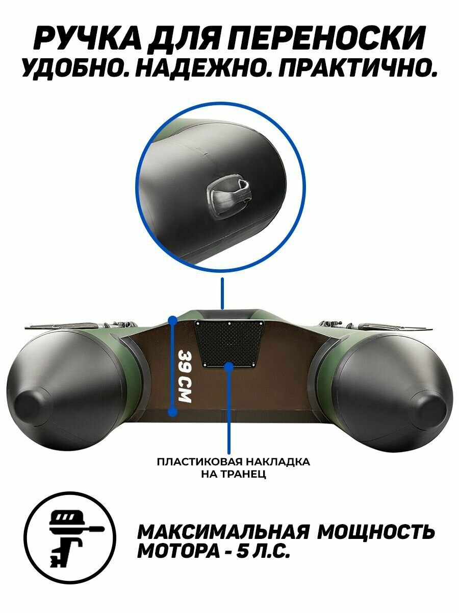 Лодка ПВХ под мотор поход 290 ТК, зеленый интересное: