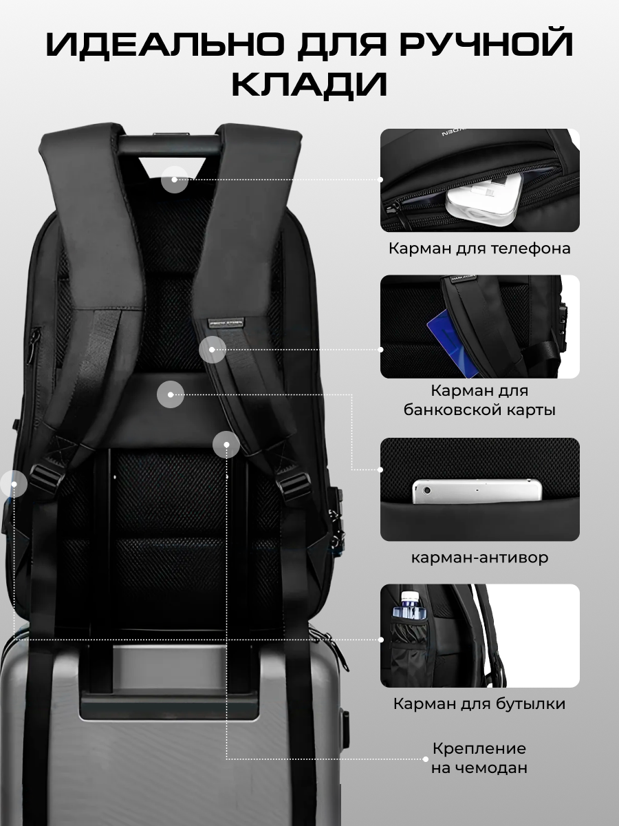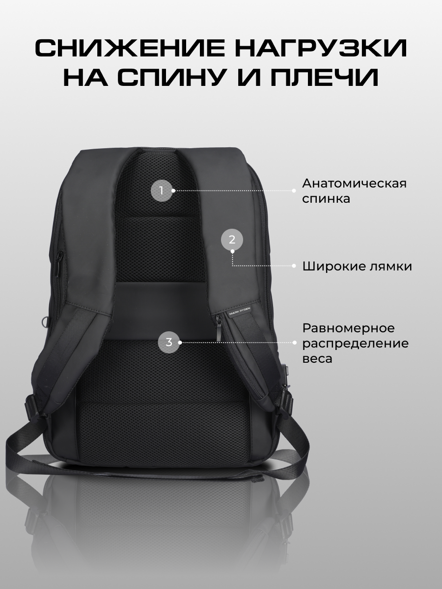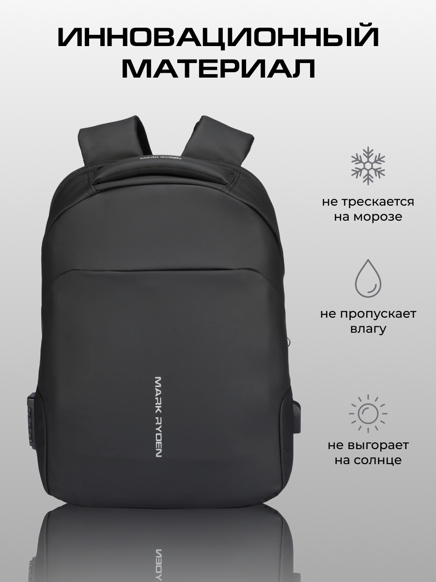 Рюкзак мужской городской черный Mark Ryden MR9068YY для ноутбука 15.6 с кодовым замком и USB, дождевик в комплекте, объем 17 л. Женский, дорожный ручная кладь, подарок мужчине, подарок мужу