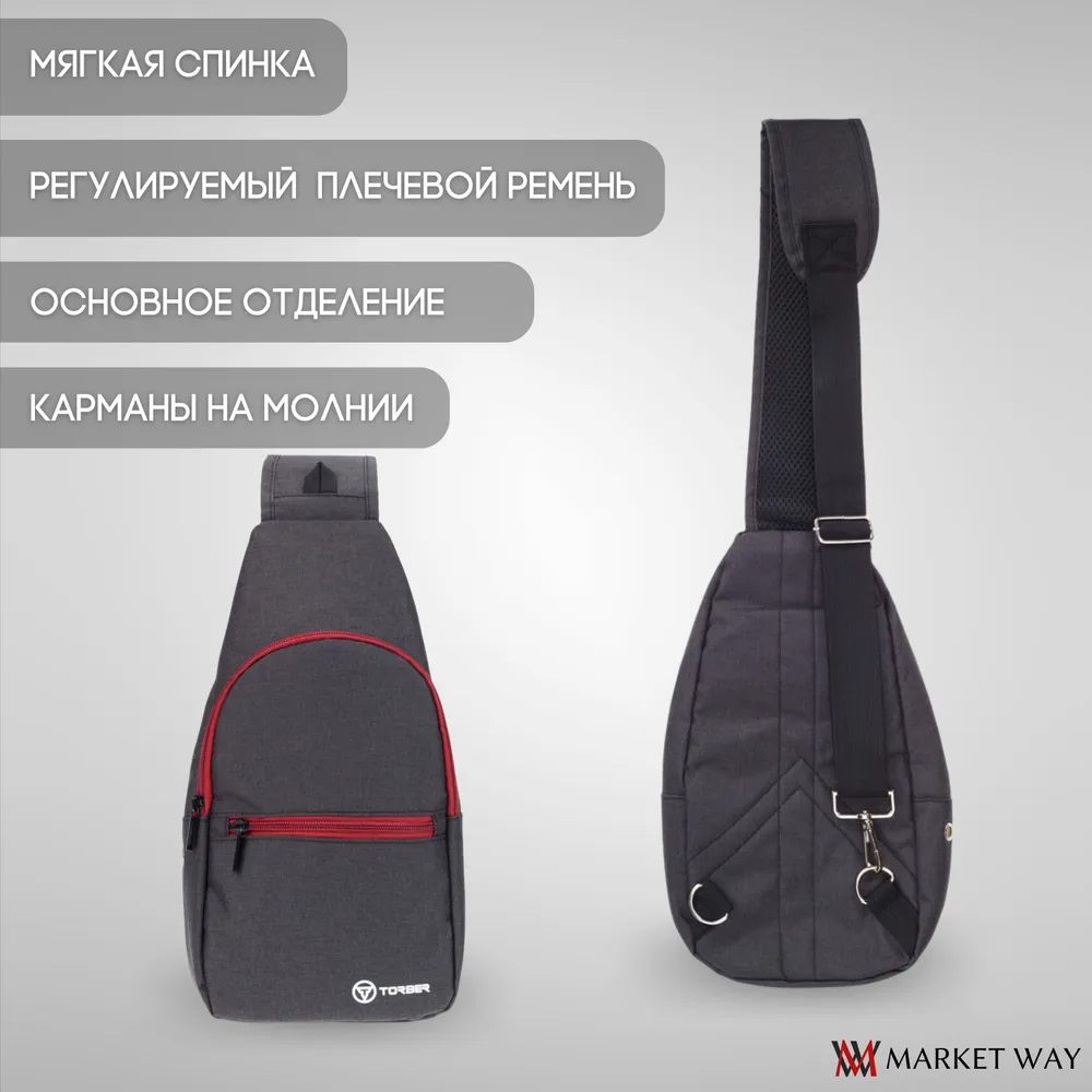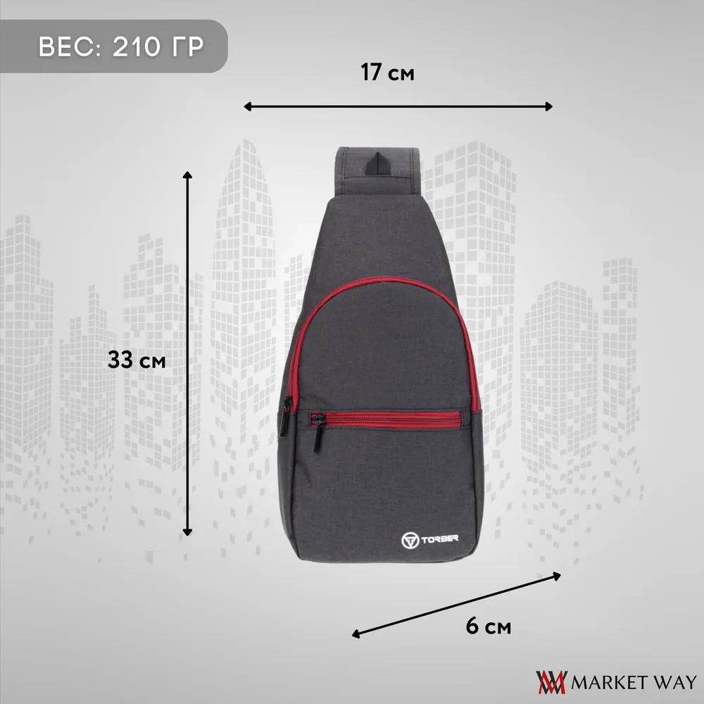 Купить Рюкзак TORBER с одним плечевым ремнем, чёрный/бордовый, полиэстер 300D, 33 х 17 х 6 см