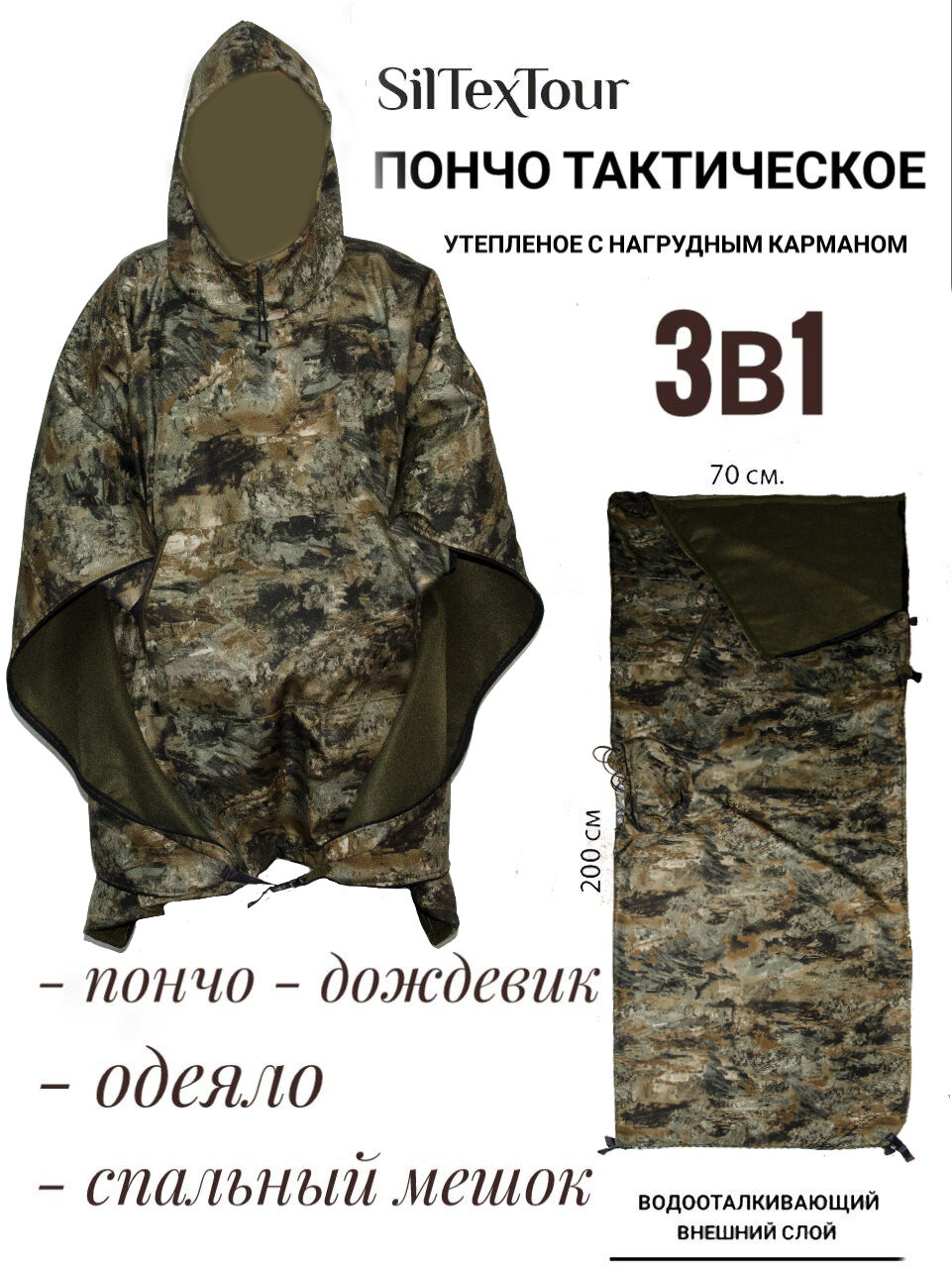 Пончо тактическое/Спальник/3в1 интересное: