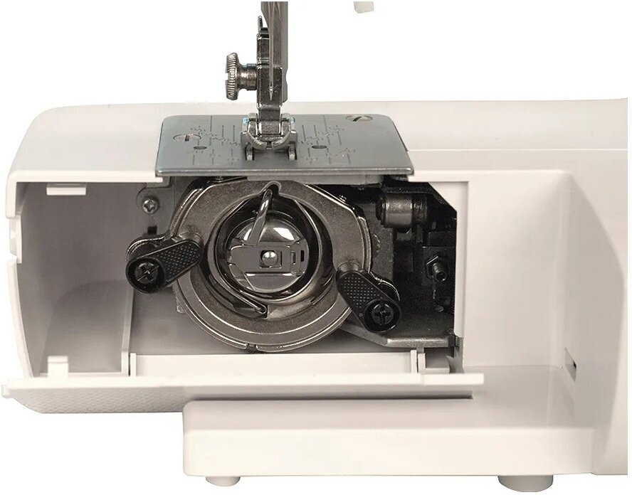 | Отзыв: | Рекомендую для начинающих. Я год уже работаю на ней, свои деньги давно уже отбила. Простая настройка, 14 швейных операции, есть специальный отсек для аксессуаров. |